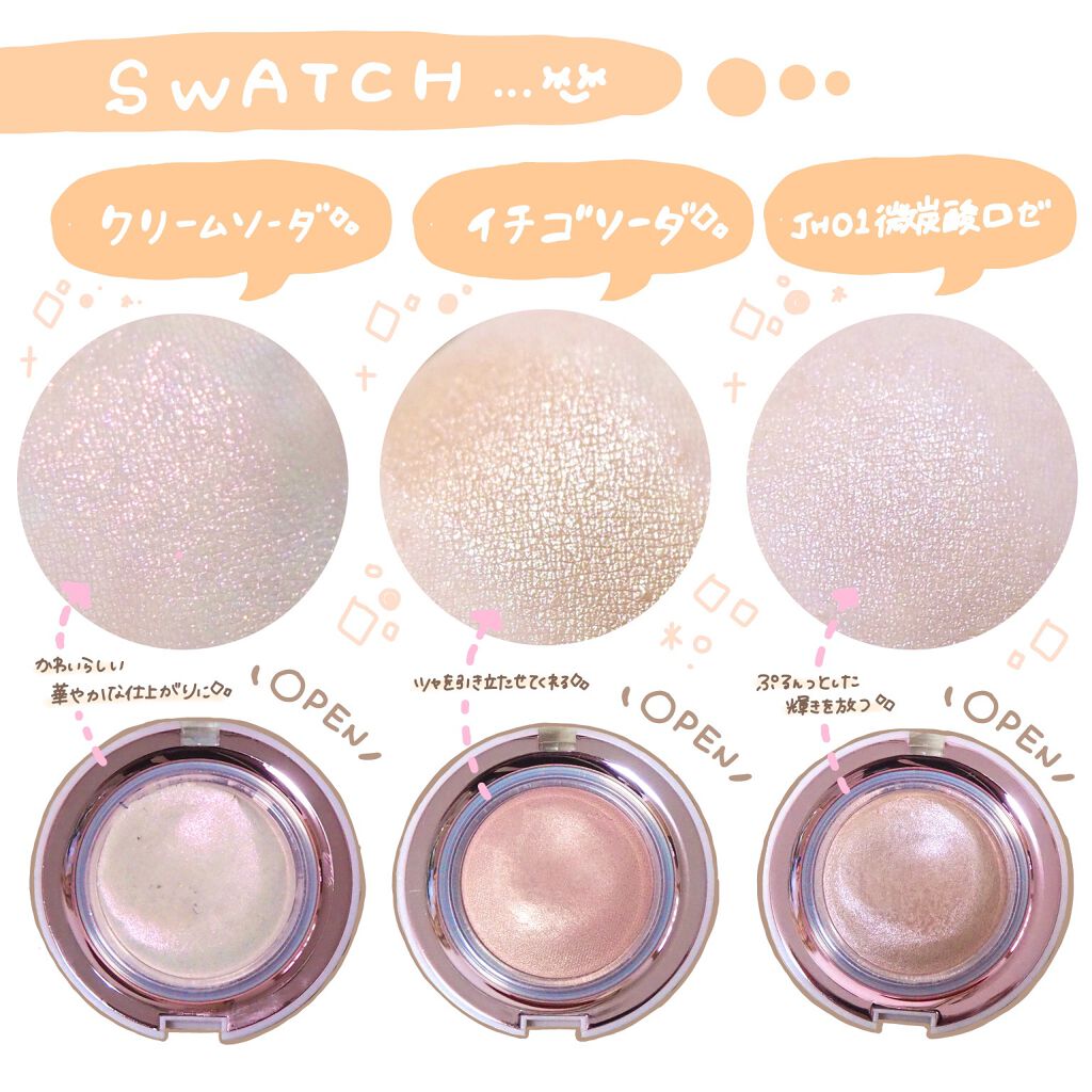 - きらツヤビーム!光彩ジェリーでつやつやハイライター バニラクリームをベースに、ピンクラメをトッピング。 輝きプラス スパークリングジュエリーパウダー しっとり仕上げ いちごミルクエキス ふんわり感UP マシュマロパウダー ◆使用方法 指に少量からとり、Tゾーンを中心に、撫でるようになじませます。 ・鼻筋やリップの山などに塗っても、かわいく仕上がります。 ・リップや目元のトッピング用にもお使いいただけます。