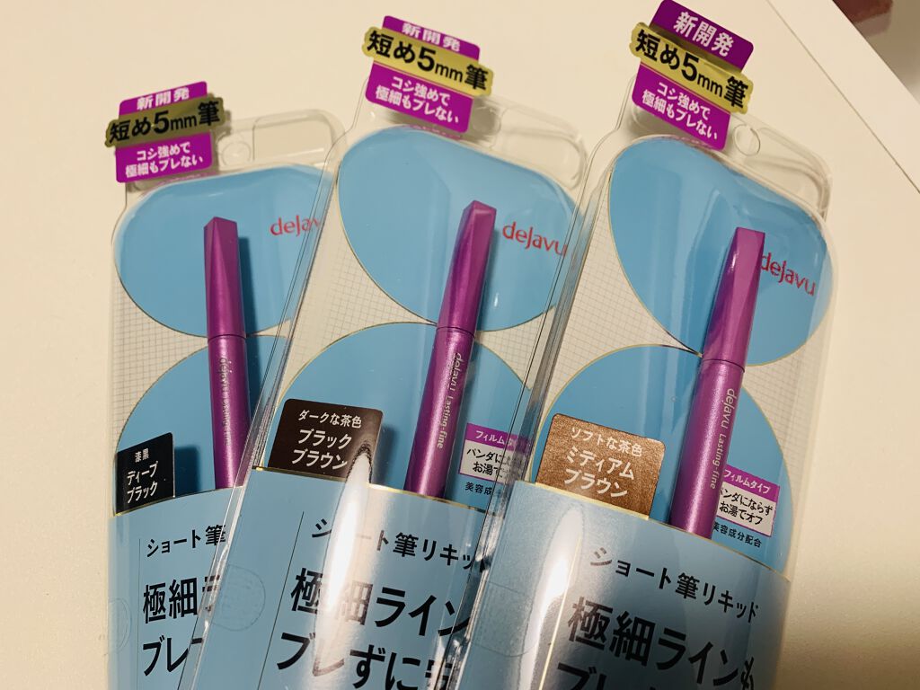 💜dejavuラスティンファインEショート筆リキッドミディアムブラウン💜筆先が“5mmのショート筆”で、筆が長すぎずしなりにくいため、安定して極細ラインが描けるよう設計されていてブレずに狙ったラインが描きやすいアイライナーです☺️皮脂・汗・涙...