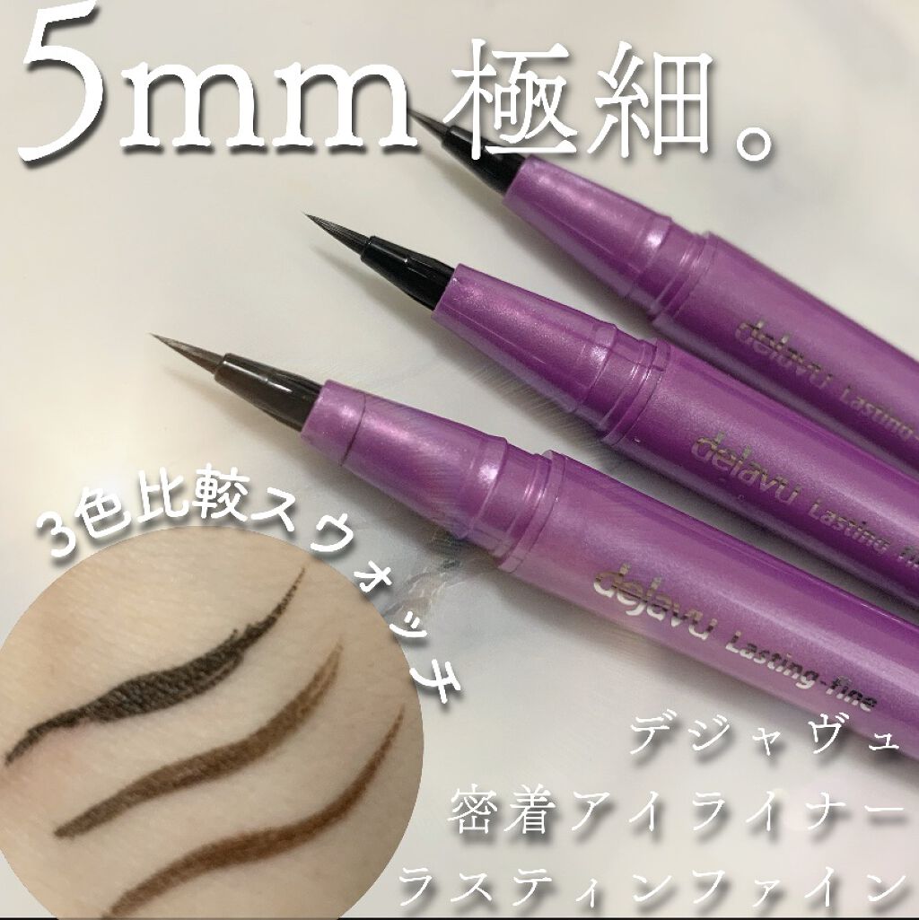 💜dejavuラスティンファインEショート筆リキッドミディアムブラウン💜筆先が“5mmのショート筆”で、筆が長すぎずしなりにくいため、安定して極細ラインが描けるよう設計されていてブレずに狙ったラインが描きやすいアイライナーです☺️皮脂・汗・涙...