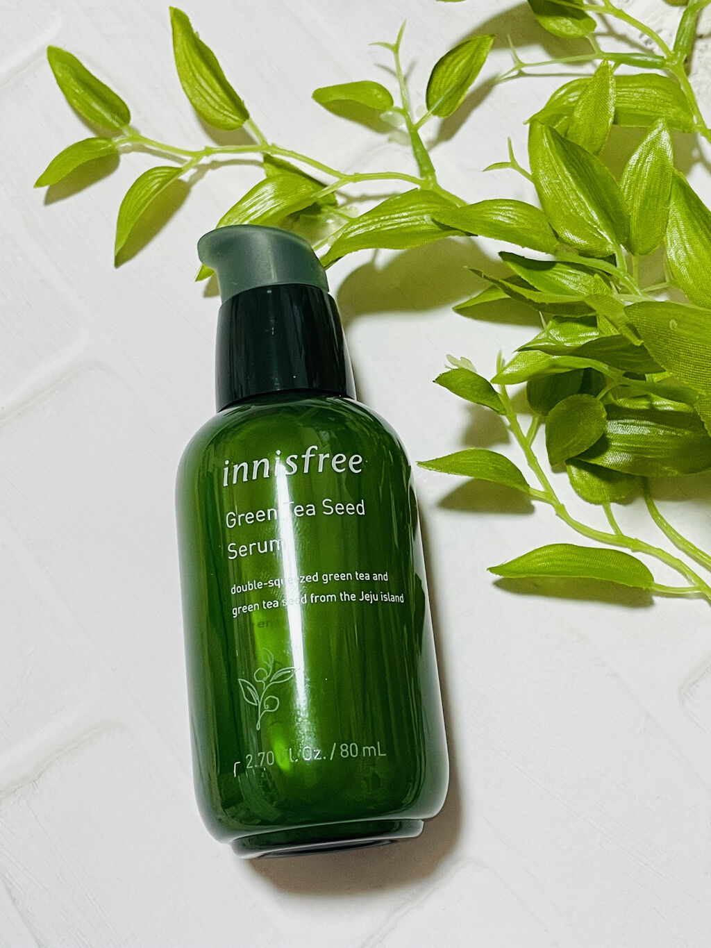 - グリーンティー成分*1が肌の内側*2からしっとりと潤いをチャージし、みずみずしく弾む肌へと導くブースターセラム ◆素早く潤いを満たすブースターセラム 洗顔後すぐの使用で、乾燥しがちな洗顔後の肌に潤いチャージ。みずみずしい潤いで満たし、次のスキンケア効果を高めるブースターセラムです。 ◆イニスフリーオリジナルの美容茶葉で乾燥知らずの理想の肌へ チェジュ島産有機栽培のオリジナル美容茶葉から独自のダブルスクイーズ製法で抽出したエキスを配合。保湿効果に優れた16種類のアミノ酸やミネラルが含まれたチャ葉エキスで、潤い肌へと導きます。 ◆デュアルモイスチャーライジングテクノロジー採用 グリーンティーウォーター*3が角層のすみずみまで素早く潤いで満たし、グリーンティーシードオイル*4の保湿ヴェールで潤いを逃さず包み込みます。これにより、理想的なモイスチャーバランスをキープし、いきいきとハリのある肌へと導きます。 *1 チャ葉エキス、チャ種子油 *2 角質層 *3 水、チャ葉エキス *4 チャ種子油