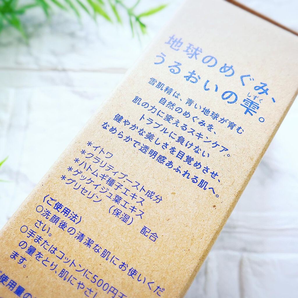 ブルーで雫みたいな形の蓋が特徴的な化粧水です。※写真忘れていました💦すみません。元々雪肌精は気になっていて、その中でも手が出しやすい価格だったので購入しました。白濁色で少しとろっとしたテクスチャーです。前はオルビスユードットの化粧水を使ってい...