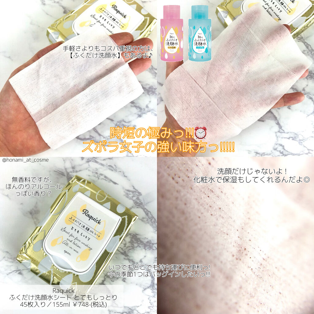 | 朝これでふくだけで洗顔+化粧水が完了!さっぱりして気持ちいい♪ | 詳細を見る |