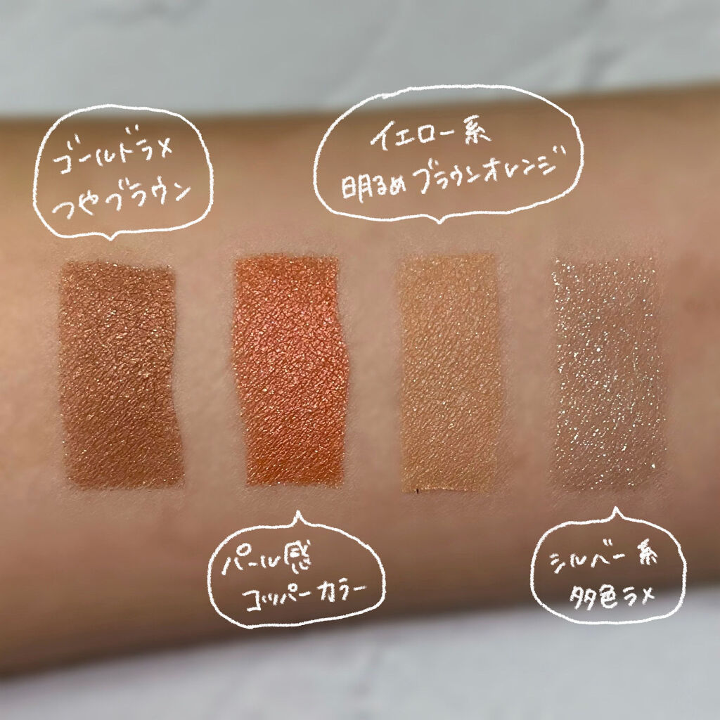 スック冬限定の赤みモーヴシャドウただのブラウン…じゃ終わらないところがさすがSUQQU。赤みやくすみ、まろやかさも備わって目元に乗せるだけで一気におしゃれさアップ!左上のラメはピンクラメで可愛い!!どことなくピンクみも感じられて暖かみのあるメ...