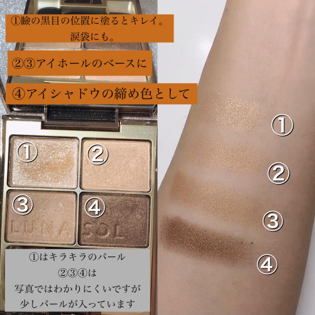 - ベージュを基調としながらも、発色、光感、透明度を計算した組み合わせをセットした4色アイシャドウ。光によって発色するルーセントカラーピグメントが、肌を美しく見せます。陰影を際立たせ、立体感ある印象的な目元を演出します。