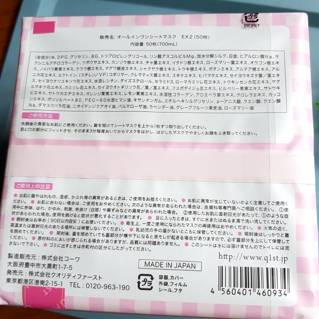 商品詳細情報クオリティファースト オールインワンシートマスク モイストEXⅡ