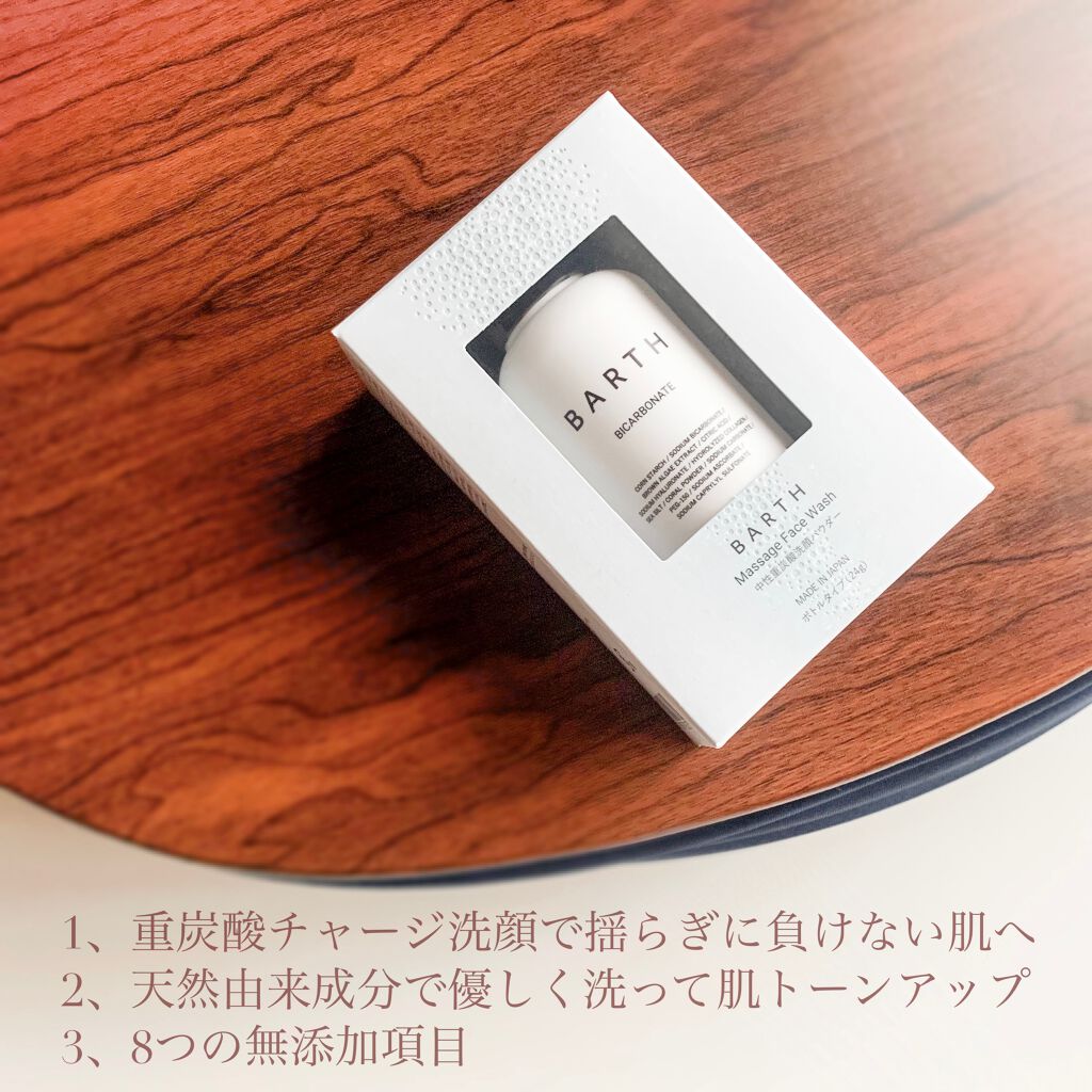 ♡あの美容重炭酸入浴剤(6枚目)で有名なBARTHから重炭酸洗顔パウダーがでた♡MassageFaceWash中性重炭酸洗顔パウダーパウダーと同じ量の水で溶かすととろんとした乳液のようななめらかテクスチャー♡Instagramに動画あげてます...