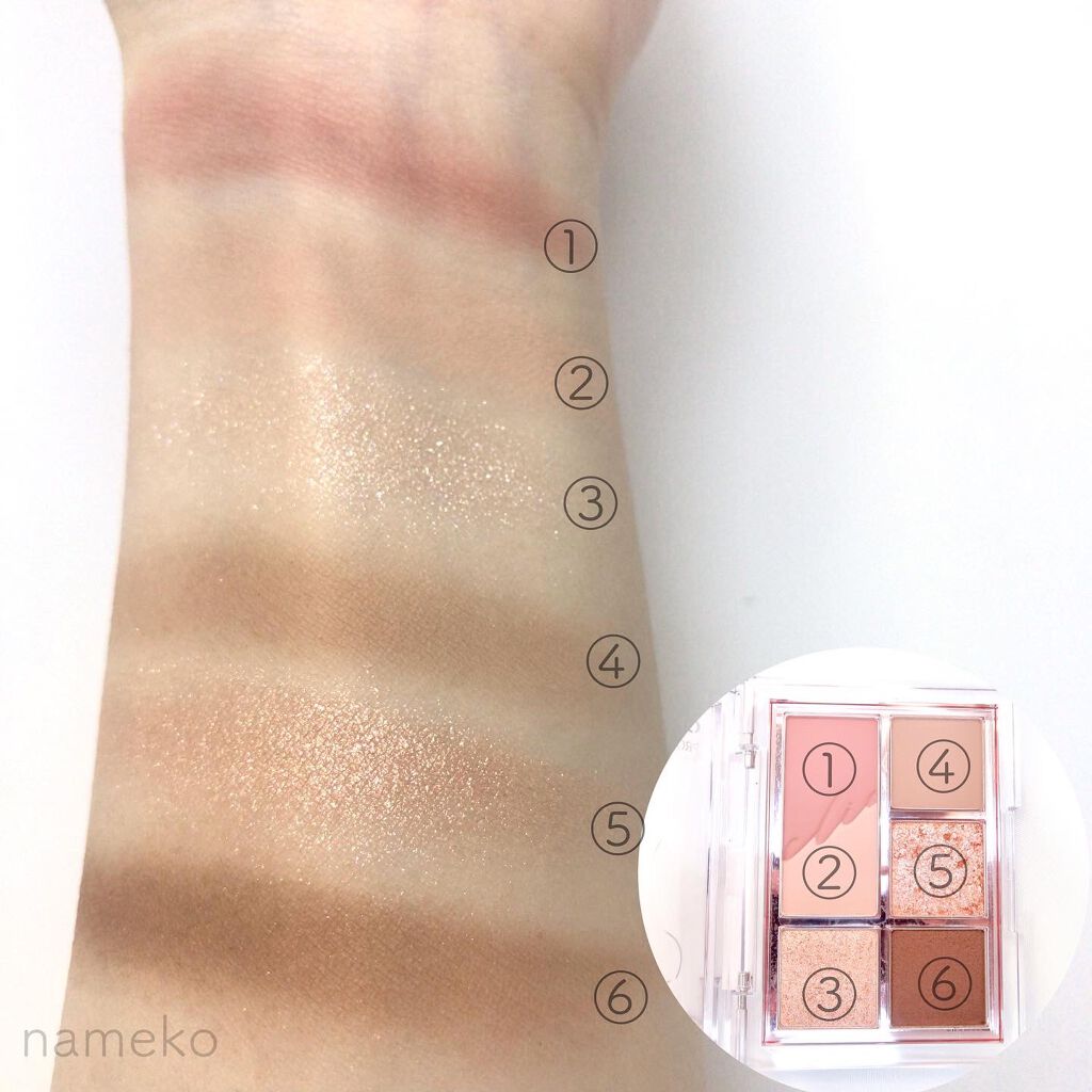 - 同系色陰影カラーと上品でクリアなグリッターの組み合わせの必要なカラーだけ詰め込んだミニアイパレット!