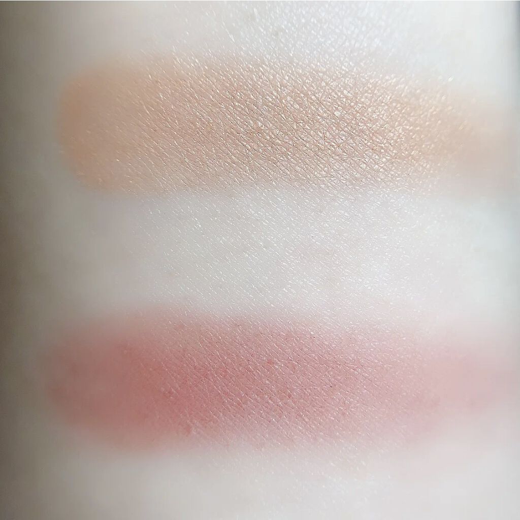 全体的な仕上がりは大人っぽくシックな雰囲気。 ちょっと儚げでスモーキーな感じもあるかな。 おとなしめと見せかけて右上のカラーに青ラメが入っていてさりげなく主張してくるのがすごく可愛い。 個人的には左上のハイライトとしても使えるベースカラーのほんのりピンクみを帯びているところが好き。 いかにもなハイライトじゃなくてほんとに肌に馴染むからナチュラルに使えるしアイメイクのベースに仕込んでおくと目元に明るさが出るし持ちも良くなるしメイクを底上げしてくれる感じがする◎ プチプラとは思えないしっとり質感と密着力の高さにも感動。 グレージュピンクがとても良かったのでチェリーオレンジも気になる、、、🍒🍊
