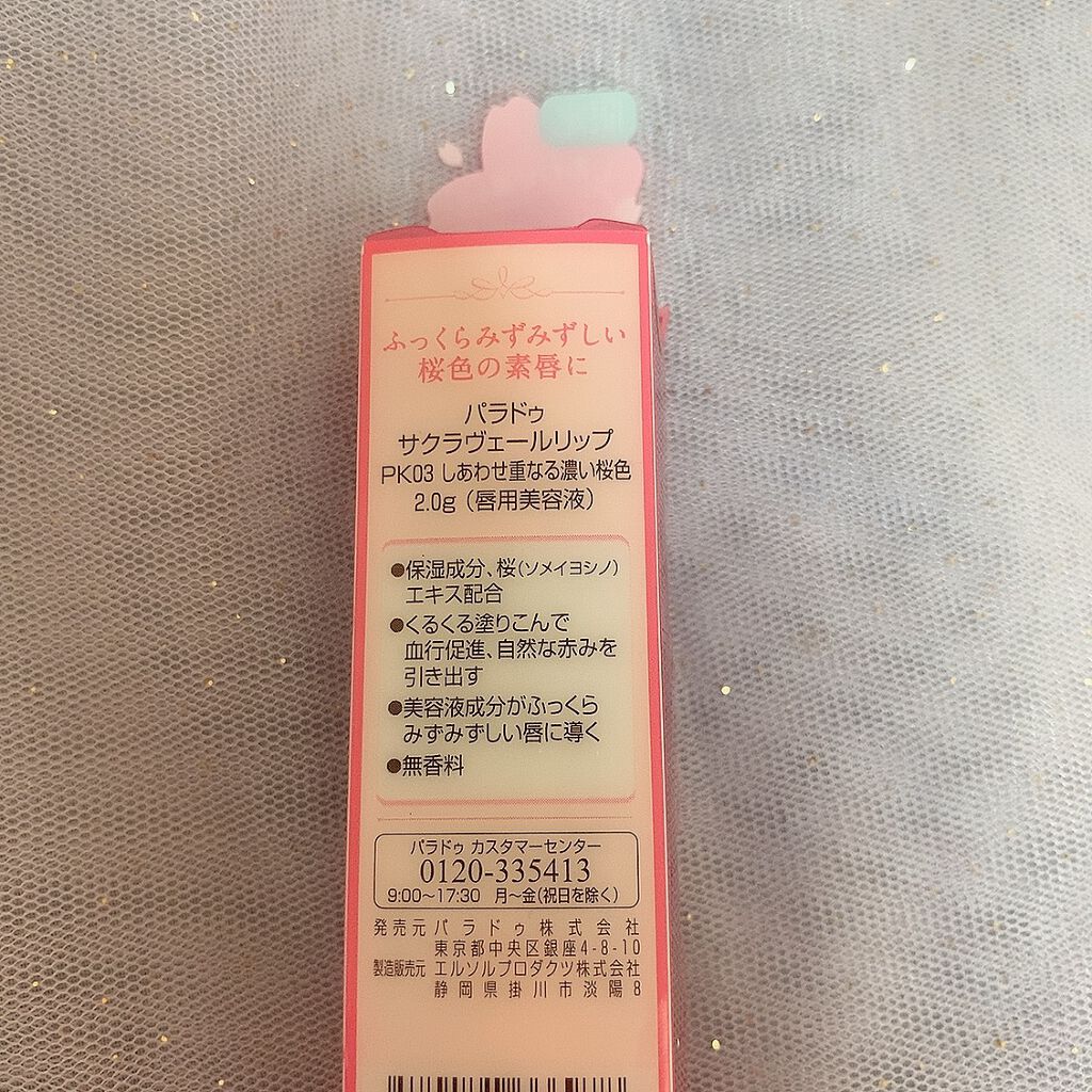 ParaDo(パラドゥ)サクラヴェールリップPK01ほんのり桜色唇用美容液『ふっくらみずみずしい🌸桜色の素唇に導く』①透明感ある唇に→保湿成分<桜(ソメイヨシノ)エキス>を配合 潤いを与えて、くすみ(※乾燥による)の 気にならない透明感のある...