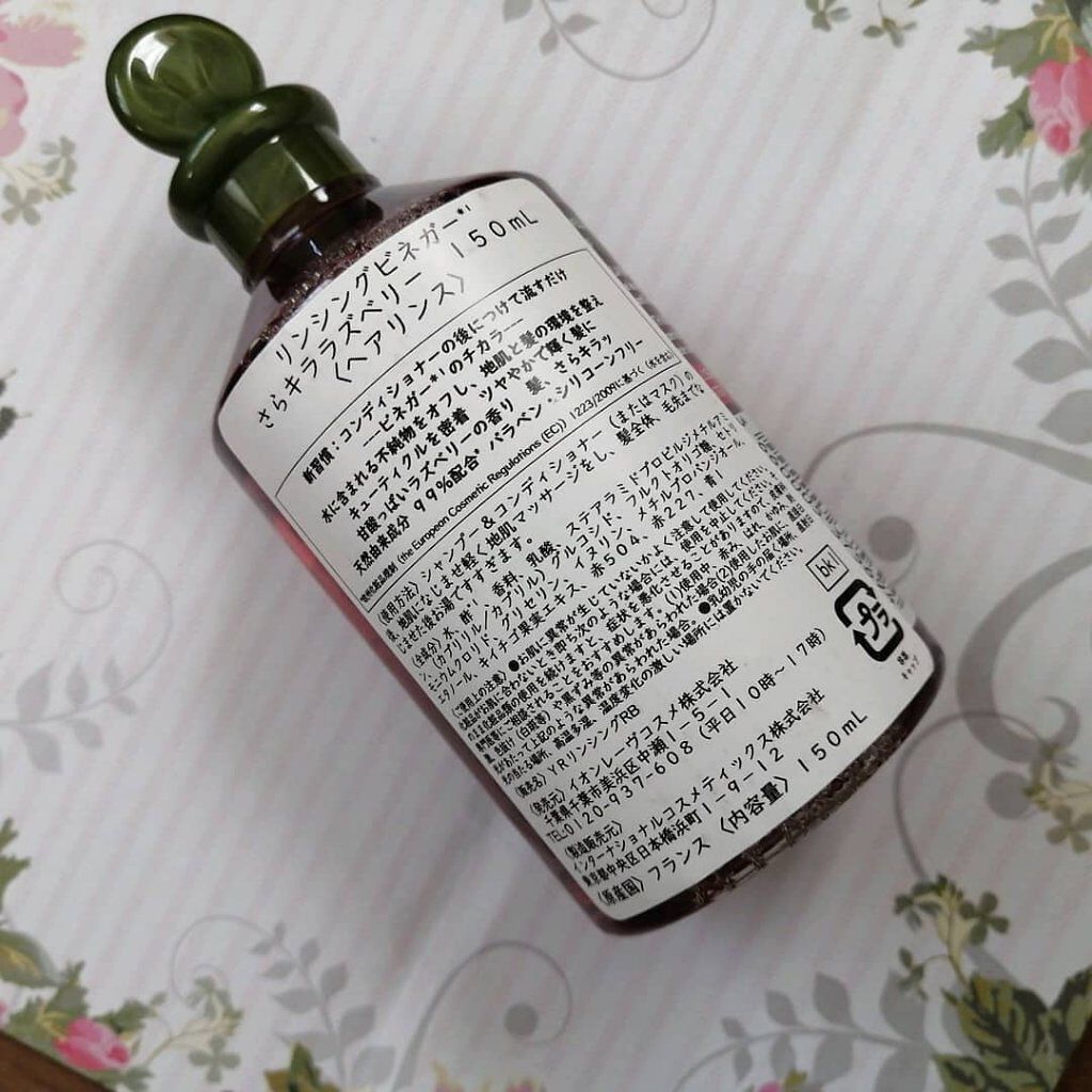 イヴ・ロシェリンシングビネガー・ピュアリフレッシュ うるつやモリンガ・シルキーシャイン さらキララズベリーこちらウエルシアでたまたま見つけて購入しました。コンディショナーやヘアマスクなどの後に頭皮や毛先に馴染ませて流すだけ!ビネガーのヘアトリ...