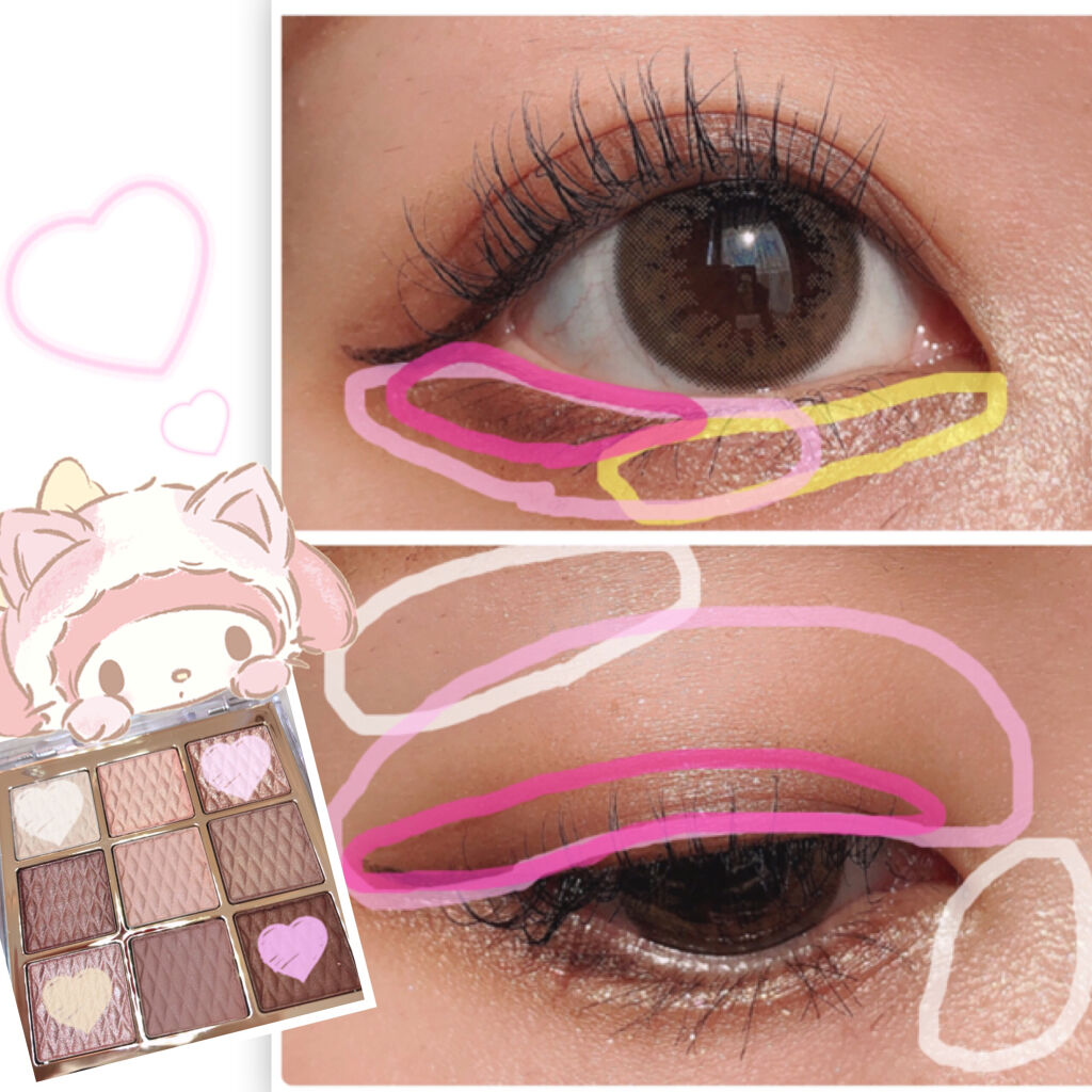 *⑅୨୧Today'smake✧︎カラコンcandymagic1dayミミブラウン✧︎アイシャドウCLIOプリズムエアーアイパレット02ピンクアディクトZEESEA星空リキッドアイシャドウ01浅草桜(涙袋に使いました)なるべくナチュラルに、で...