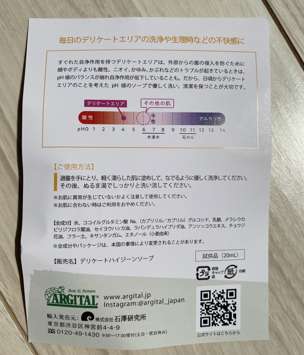 商品詳細情報ARGITAL デリケートハイジーンソープ