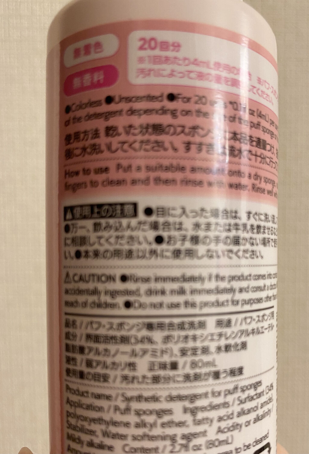 【購入品】使い切りレビュー良い点ダイソーで買える食器用(中性)洗剤よりもキレイにファンデ落ちるこちらの洗剤を使用して洗ったスポンジでメイクしても肌トラブルなかったです汚れている部分にかかるように洗剤たっぷりつけて揉み洗いするとキレイに落ちます...