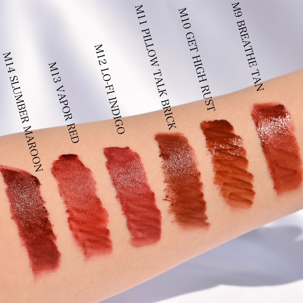 - <M1 マホガニー> ジメチコン、(ジメチコン/ビニルジメチコン)クロスポリマー、水、グリセリン、トリイソステアリン酸ポリグリセリル-2、セチルPEG/PPG-10/1ジメチコン、シクロペンタシロキサン、ペンチレングリコール、メチルトリメチコン、リンゴ酸ジイソステアリル、(アクリル酸ブチル/アクリル酸ヒドロキシプロピルジメチコン)コポリマー、イソドデカン、フェノキシエタノール、トリメチルシロキシケイ酸、(アクリル酸グリセリル/アクリル酸)コポリマー、マイカ、シリカ、ポリプロピルシルセスキオキサン、カプリリルグリコール、1,2-ヘキサンジオール、プロパンジオール、香料、エチルヘキシルグリセリン、水酸化Al、ジメチルシリル化シリカ、ダイウイキョウ果実エキス、メチコン、ヤシ油、アルガニアスピノサ核油、ワサビノキ種子油、シア脂、ハチミツエキス、BG、酸化チタン、酸化鉄、赤104(1)、赤202、黄5、青1 <M2 ジェインチリー> ジメチコン、(ジメチコン/ビニルジメチコン)クロスポリマー、水、グリセリン、トリイソステアリン酸ポリグリセリル-2、セチルPEG/PPG-10/1ジメチコン、シクロペンタシロキサン、ペンチレングリコール、リンゴ酸ジイソステアリル、メチルトリメチコン、(アクリル酸ブチル/アクリル酸ヒドロキシプロピルジメチコン)コポリマー、イソドデカン、フェノキシエタノール、トリメチルシロキシケイ酸、(アクリル酸グリセリル/アクリル酸)コポリマー、マイカ、シリカ、ポリプロピルシルセスキオキサン、カプリリルグリコール、1,2-ヘキサンジオール、香料、プロパンジオール、エチルヘキシルグリセリン、水酸化Al、ジメチルシリル化シリカ、ダイウイキョウ果実エキス、メチコン、ワサビノキ種子油、シア脂、ヤシ油、アルガニアスピノサ核油、ハチミツエキス、BG、酸化チタン、酸化鉄、赤104(1)、赤202、黄4、黄5、青1 <M3 スパイスブリック> ジメチコン、(ジメチコン/ビニルジメチコン)クロスポリマー、水、グリセリン、トリイソステアリン酸ポリグリセリル-2、セチルPEG/PPG-10/1ジメチコン、シクロペンタシロキサン、ペンチレングリコール、メチルトリメチコン、(アクリル酸ブチル/アクリル酸ヒドロキシプロピルジメチコン)コポリマー、イソドデカン、フェノキシエタノール、トリメチルシロキシケイ酸、(アクリル酸グリセリル/アクリル酸)コポリマー、マイカ、シリカ、ポリプロピルシルセスキオキサン、カプリリルグリコール、リンゴ酸ジイソステアリル、1,2-ヘキサンジオール、香料、プロパンジオール、水酸化Al、エチルヘキシルグリセリン、ジメチルシリル化シリカ、ダイウイキョウ果実エキス、メチコン、ワサビノキ種子油、シア脂、ヤシ油、アルガニアスピノサ核油、ハチミツエキス、BG、酸化チタン、酸化鉄、赤104(1)、黄4、黄5 <M4 ビアンローズ> ジメチコン、(ジメチコン/ビニルジメチコン)クロスポリマー、水、グリセリン、セチルPEG/PPG-10/1ジメチコン、トリイソステアリン酸ポリグリセリル-2、シクロペンタシロキサン、リンゴ酸ジイソステアリル、ペンチレングリコール、メチルトリメチコン、(アクリル酸ブチル/アクリル酸ヒドロキシプロピルジメチコン)コポリマー、イソドデカン、フェノキシエタノール、トリメチルシロキシケイ酸、(アクリル酸グリセリル/アクリル酸)コポリマー、マイカ、シリカ、ポリプロピルシルセスキオキサン、カプリリルグリコール、1,2-ヘキサンジオール、香料、プロパンジオール、エチルヘキシルグリセリン、水酸化Al、ジメチルシリル化シリカ、ダイウイキョウ果実エキス、メチコン、ワサビノキ種子油、シア脂、ヤシ油、アルガニアスピノサ核油、ハチミツエキス、BG、酸化チタン、酸化鉄、赤202、赤227、黄4、青1 <M5 ヘイキャンディー> ジメチコン、(ジメチコン/ビニルジメチコン)クロスポリマー、水、グリセリン、トリイソステアリン酸ポリグリセリル-2、セチルPEG/PPG-10/1ジメチコン、シクロペンタシロキサン、ペンチレングリコール、メチルトリメチコン、(アクリル酸ブチル/アクリル酸ヒドロキシプロピルジメチコン)コポリマー、イソドデカン、フェノキシエタノール、トリメチルシロキシケイ酸、リンゴ酸ジイソステアリル、(アクリル酸グリセリル/アクリル酸)コポリマー、マイカ、シリカ、ポリプロピルシルセスキオキサン、カプリリルグリコール、1,2-ヘキサンジオール、プロパンジオール、香料、エチルヘキシルグリセリン、ジメチルシリル化シリカ、ダイウイキョウ果実エキス、メチコン、アルガニアスピノサ核油、シア脂、ヤシ油、ワサビノキ種子油、ハチミツエキス、BG、酸化鉄、赤104(1)、赤202、黄5 <M6 トニールビー> ジメチコン、(ジメチコン/ビニルジメチコン)クロスポリマー、水、グリセリン、トリイソステアリン酸ポリグリセリル-2、セチルPEG/PPG-10/1ジメチコン、シクロペンタシロキサン、ペンチレングリコール、メチルトリメチコン、(アクリル酸ブチル/アクリル酸ヒドロキシプロピルジメチコン)コポリマー、