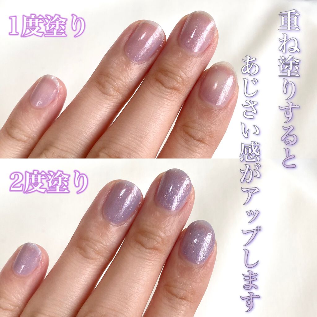 ハケが大きめで塗りやすさ抜群🙆♀️✨ 一度塗りだと結構控えめな発色なので、個人的には2.3度塗りがおすすめです☺️♪ ただ繊維が入っている為か、少し剥がれやすいのが難点かも…🥲 剥がれるというより、ペロッと捲れてしまう感じです😣! なので、トップコートは必須かなという感じです☝🏻🌟 色は可愛いので、剥がれやすさがもっと改善されたら嬉しいです😊✨✨