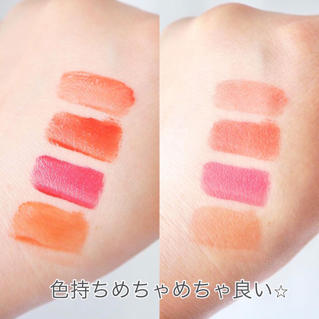 とにかく質感がしーっとりととろけるバームテクスチャーで、保湿力はかなり高い! 少しペタペタもしますが密着力もあるので色持ち良し♪ マスクレスの時にぜひ使いたいぷるぷるでツヤがきれいな仕上がりです。 カラー展開も豊富で、イエベさん向けブルベさん向け揃ってます☆ 私のお気に入りは01と05♡ そして08 Coraliaも可愛くって好き! 6月からドラッグストアにも展開予定だそうですよ♡