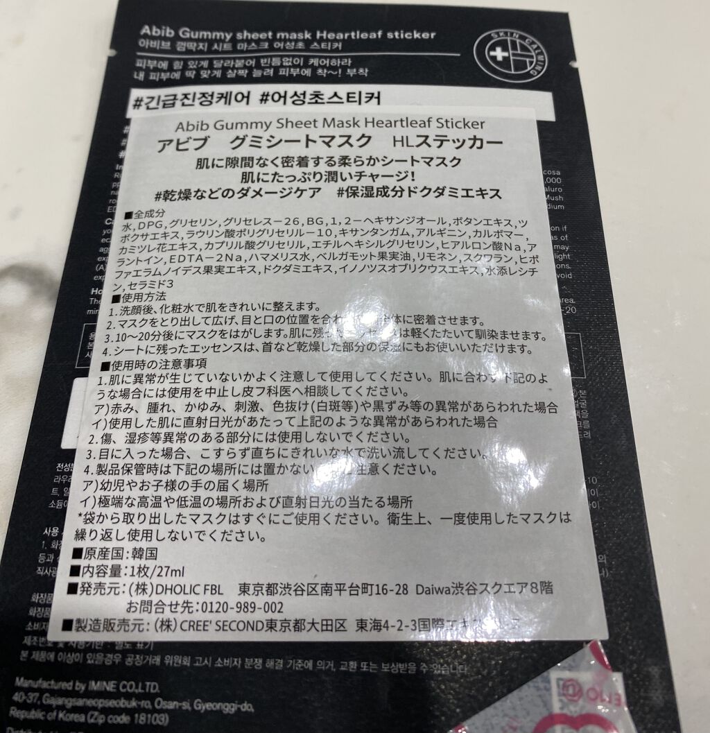 商品詳細情報Abib ガムシートマスクドクダミステッカー