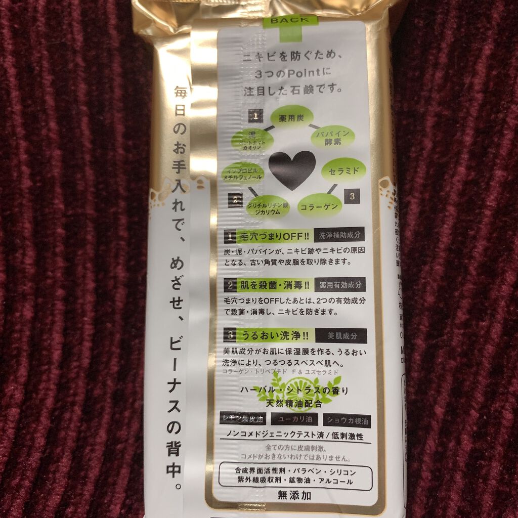 - 医薬部外品 めざせビーナスの背中!炭泥配合の薬用泡で、ニキビを3Stepケア! ニキビの出来かたに注目し、しっかりケアする炭泥配合の薬用石けんです。 ハーバル・シトラスが香るモコモコ泡で、ニキビをくり返さない肌へ。