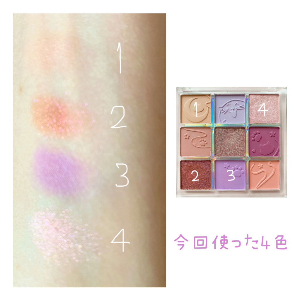雲のような柔らかい質感で密着力が抜群です。 もちふわなテクスチャーで高発色なアイシャドウ。 なによりパッケージ、世界観がかわいい! アイシャドウパレットは刻印がとてもかわいくて、それぞれのイメージに基づいているのもかわいいです。 値段も他のアイシャドウパレットと比べるとそれほど高くない! 蓋も硬くないです!!!←これ大事