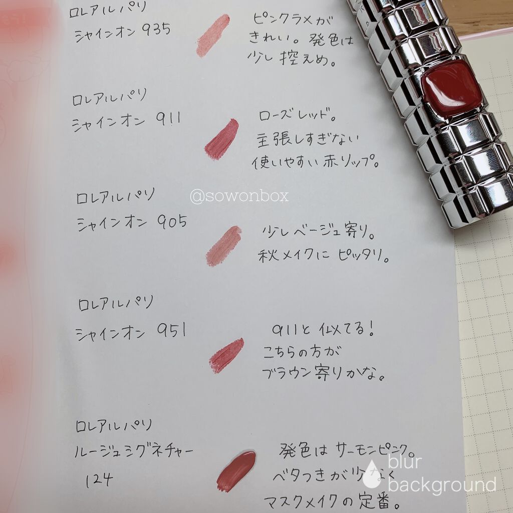 ロレアルパリ♥·♡τнanκчou♡·♥·シャインオン各色🧸𖤐⡱ルージュシグネチャーサーモンピンク(前回の投稿と画像が離れてしまいました。)シャインオン🚲𓂃𓈒𓏸ツヤツヤタイプのリップ。唇はちょっと皮が剥ける程度でした。ロレアルパリのリップの...