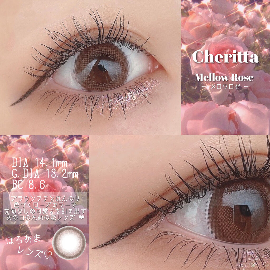 - “仕込む”ナチュラルメイク。 もっと自然に可愛くなりたい、そんなすべての女性へ。 Cheritta(チェリッタ)は、「イメチェンしたいけど変わりすぎるのは苦手」「ちょっとだけあか抜けたい」という全ての女性へ向け、メイクの過程にチェリッタを加えるだけで、いつもより自然に可愛くなれるナチュラルなデザインのカラーコンタクトレンズブランドです。 カラーコンタクトレンズの不適正使用による眼障害の危険性等などがあります。 ●コンタクトレンズは高度管理医療機器です。不十分な洗浄・消毒など不適切なケアや、長時間・交換期間を超えた装用により、アレルギー性結膜炎、角膜感染症、角膜潰瘍等の重篤な眼障害が発生する危険性があります ●ご使用前に取扱説明書を確認してください 使用上の留意事項 ●眼科医院等を受診してからお求めください ●眼に異常を感じたら直ちにレンズ使用を中止し、お近くの眼科等で診察を受けてください ●医師の指示にしたがってご使用ください ●コンタクトレンズを装用する場合、自覚症状がなくても、眼科医院等での定期検査を受けてください ●レンズに不具合がある場合は使用しないでください
