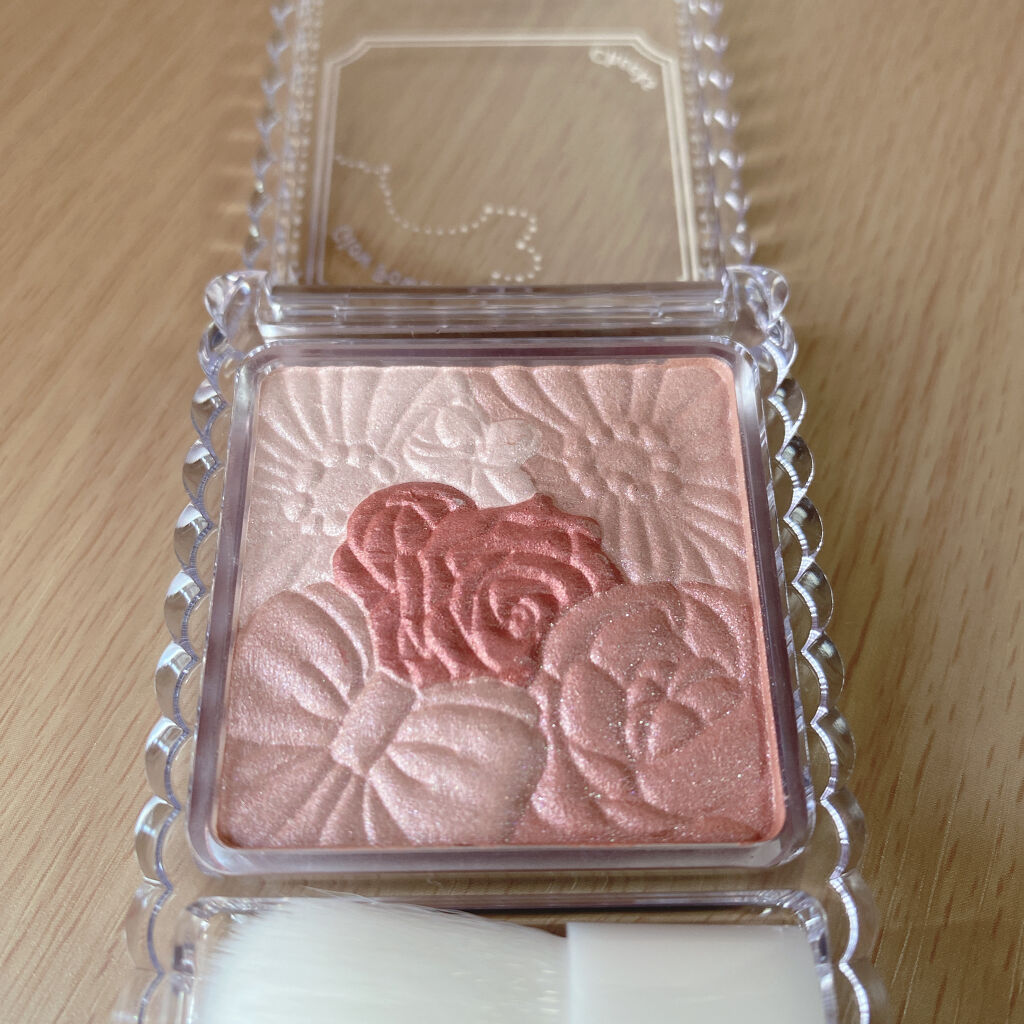 見た目がハート型で可愛いのに 粉質はしっとり付属のブラシもチクチクせず塗布できて660円はすごい🌸 透け感のあるツヤ仕上がりで P04はハイライトとして使うのも◎ 全部色味の違うピンクカラーでその日の気分やメイクに合わせて使い分けてる🌷
