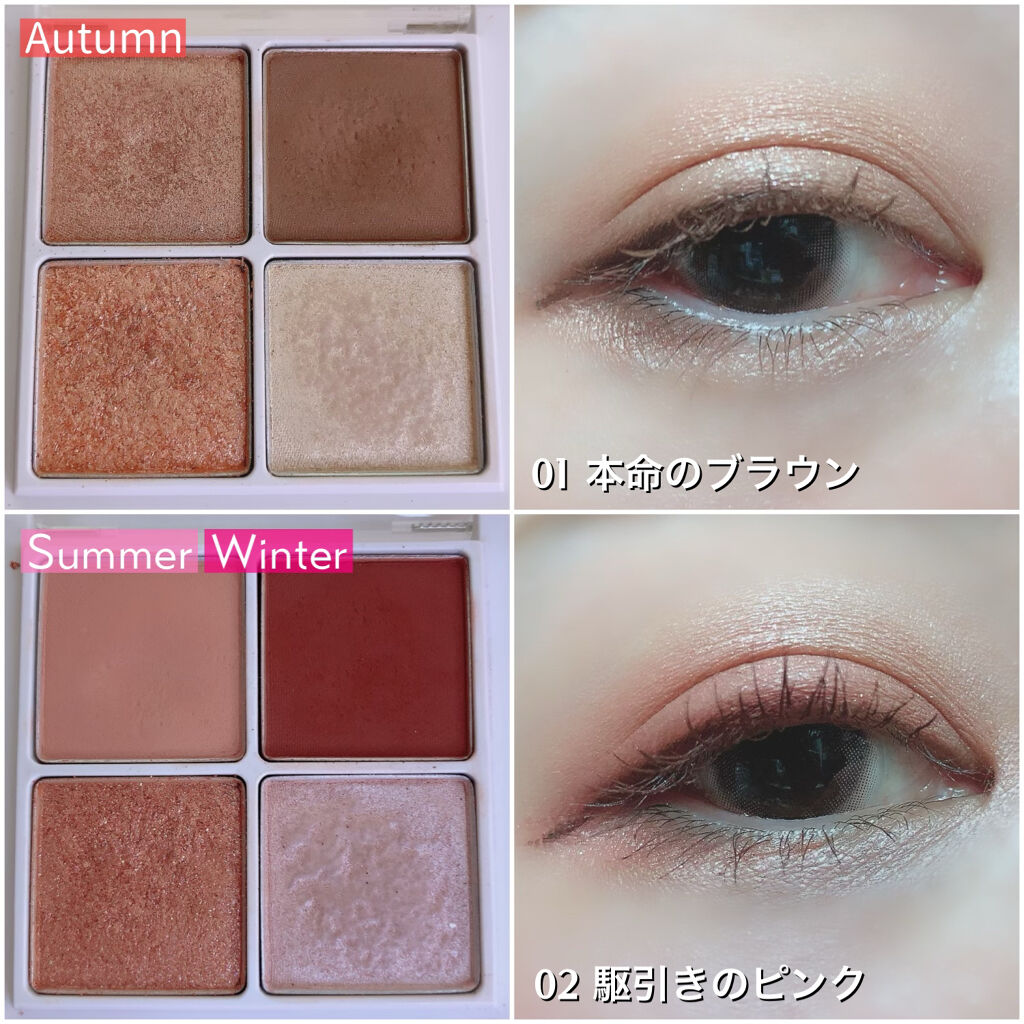 - 魔法の4色で印象的な目元に。 きらめきシャドウ×ハイライター あらゆるアイシャドウパレットを試してきた吉田朱里がたどり着いたのは“カラー3色+ハイライト”の4色パレット。 質感の異なるきらめきパウダーと、こだわりの配色で視線をひきつける印象的な目元へ。 立体感をつくるツヤ増しハイライター入り。 細部まで計算されたベストパレットで、一気にアイドル級の目力を演出します。 ※チップ・鏡はついておりません。 ※2023/3/31 リニューアル