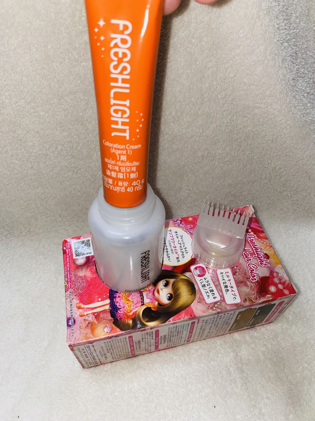 FRESHLITEミルキーヘアカラーPremiumBeige(プレミアムベージュ)を紹介します💕●ダブルオイル処方で輝きのある髪色に●ミルキータイプでキレイな発色●サンフラワーオイル(うるおい成分)配合のヘアマスク付●ムラなくぬれるくし型ノズ...
