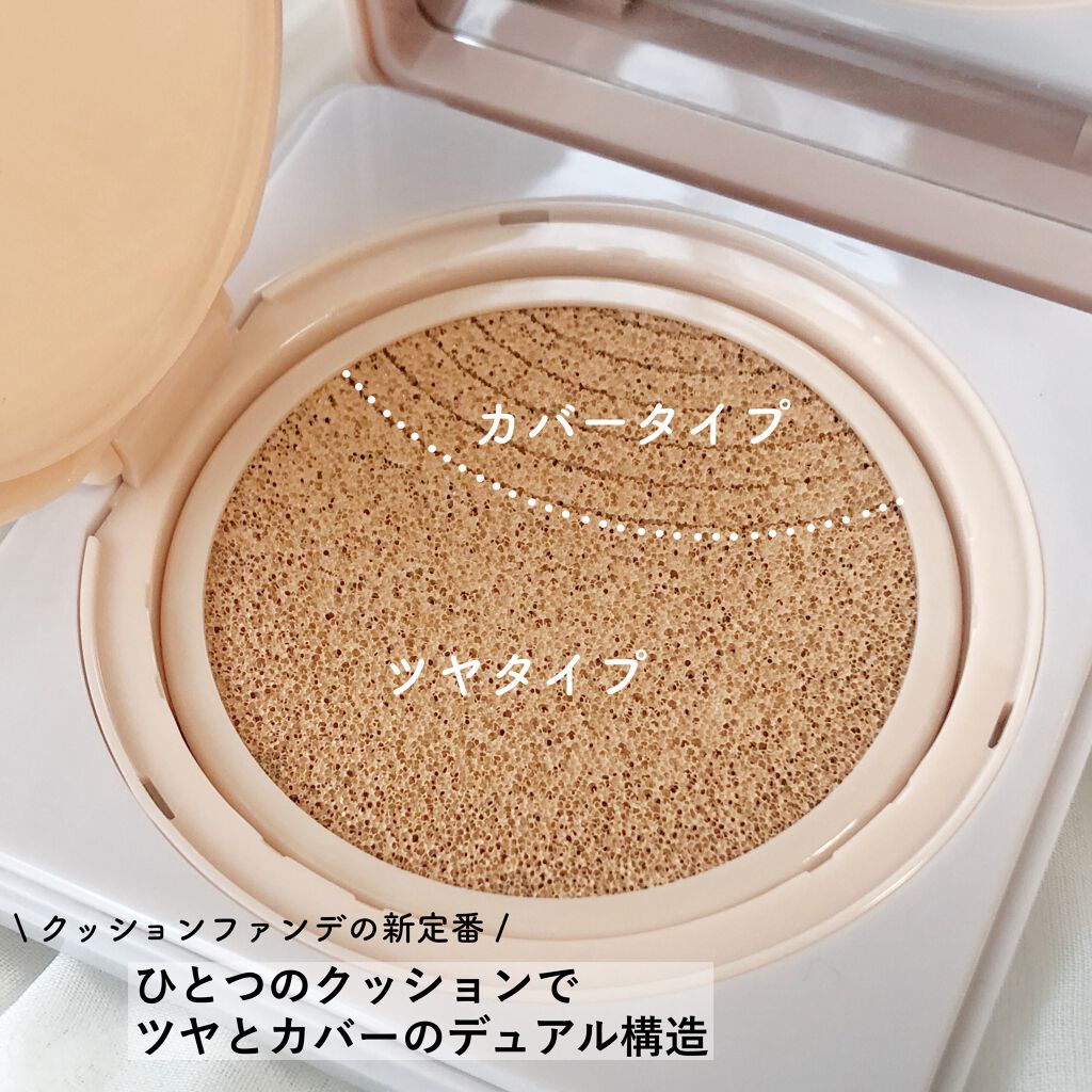 - デュアルクッションがパッケージリニューアル! これ1つでツヤ肌演出 「肌管理*1ファンデ」 \これ1つで4役/ ファンデ+UV機能+下地効果+コンシーラー ツヤもカバーも潤いも素肌感も欲しい! そんな欲張りを叶えるデュアル構造。 ツヤっぽい素肌感も、カバー力もピタッと密着して崩れにくい。 たっぷりうるおって厚塗り感も出にくい❤ ▼フィルムフォルマーによるロングラスティング効果 ※性質の異なる2種の高分子レジンが伸びと密着感を実現 ▼光を味方に透明感を演出するツヤ天然由来オイル配合 ※ザクロ種子油・ローズ油・月見草油(すべて保湿成分) ▼毛穴と崩れを徹底的にカバーする大小異なるパウダーが、均一に整列し密着。 毛穴もシミも自然にカバー ▼季節を問わず365日室内まで降り注ぐUVをカット SPF50+/PA++++ ▼潤いたっぷりスキンケア処方 01 ナチュラルカラー:透明感のあるナチュラルで明るい印象の美人肌へ*2 02 ヘルシーカラー:血色感のあるヘルシーな印象の素肌美人肌へ*2 *1うるおいケアのこと *2メイクアップ効果