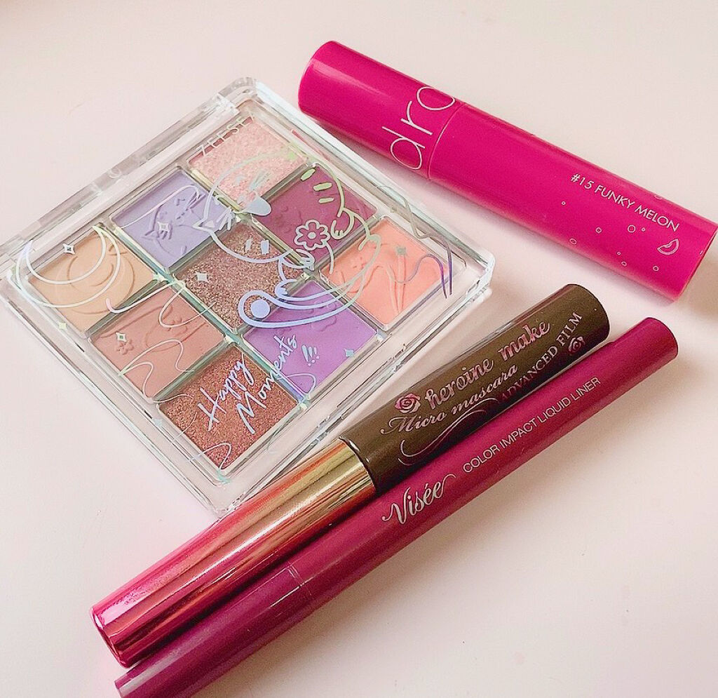 雲のような柔らかい質感で密着力が抜群です。 もちふわなテクスチャーで高発色なアイシャドウ。 なによりパッケージ、世界観がかわいい! アイシャドウパレットは刻印がとてもかわいくて、それぞれのイメージに基づいているのもかわいいです。 値段も他のアイシャドウパレットと比べるとそれほど高くない! 蓋も硬くないです!!!←これ大事