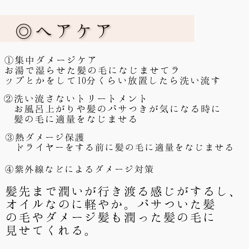 | ヘアケア・スタイリングランキング第55位 | いいオイル!ブリーチで傷んでる髪もまとまってくれる♡指通りサラサラ♡ | 詳細を見る | |