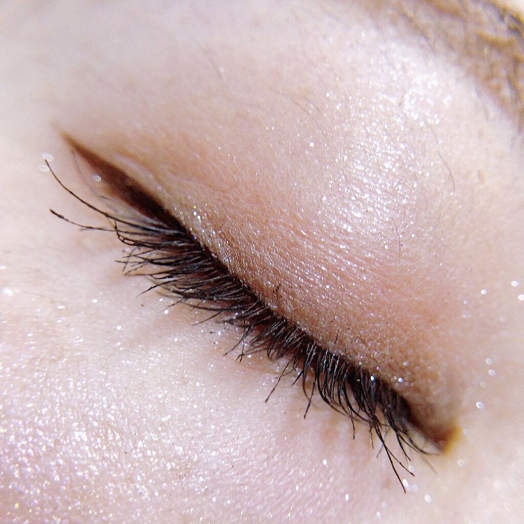 やっぱりめっちゃくすみました😇← でもツヤ感やラメ具合や粉質はさすが👏 仕上がりはほんとめちゃくちゃよし✨ アイライナーも、シュッと引いたらちゃんと細い線が描けたしいい感じ☺️