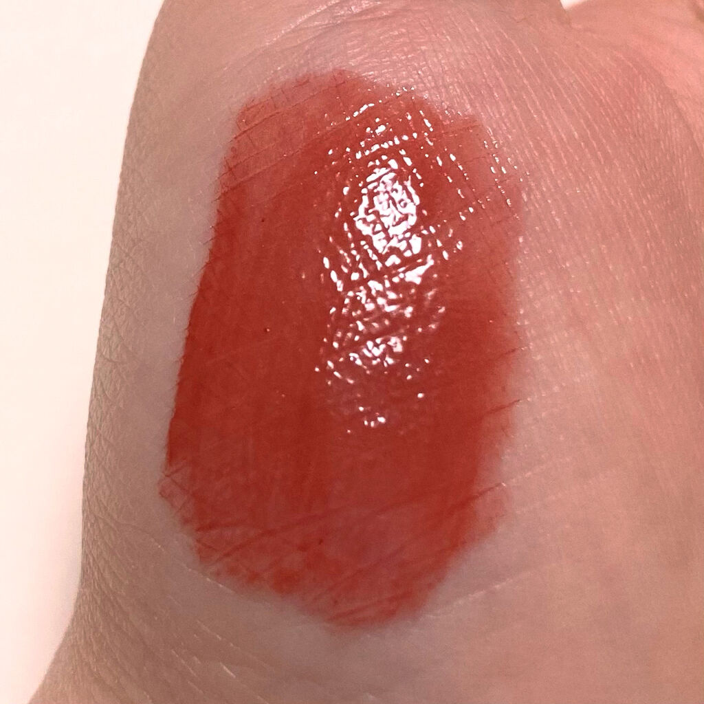 ・薄めに塗るとオレンジベージュでデイリー使いに凄くおすすめです. ・しっかり塗るとこっくりとしたブラウンベージュに発色して1本でふんわりナチュラルもこっくり深めのカラーも楽しめます♡ ・濃いめに塗ってすぐにマスクをしたり拭き取ってしまうと割とベタっと取れてしまうので、数分時間を置いてからティッシュで軽くオフするとマスクにも付きにくく色も長持ちします. ・塗ってすぐはペタペタする感じがするので、軽くティッシュオフする事をおすすめします. ・ティントには珍しいニュアンスカラーで、青みピンクに染まることもなくふわっふわの唇になれます☽・:* ・割と乾燥しやすいので、唇の皮が剥けやすい人は保湿用のリップと使うことをおすすめします⚠︎
