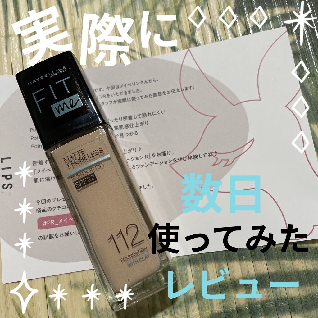 カラバリえぐ!!MAYBELLINENEWYORKフィットミーリキッドファンデーションR112、120ルミマットファンデ人気だけど、、、、フィットミーも負けてないのよ!!軽いつけ心地で肌にぴったり密着し、崩れにくいのがポイント!!毛穴やくすみ...