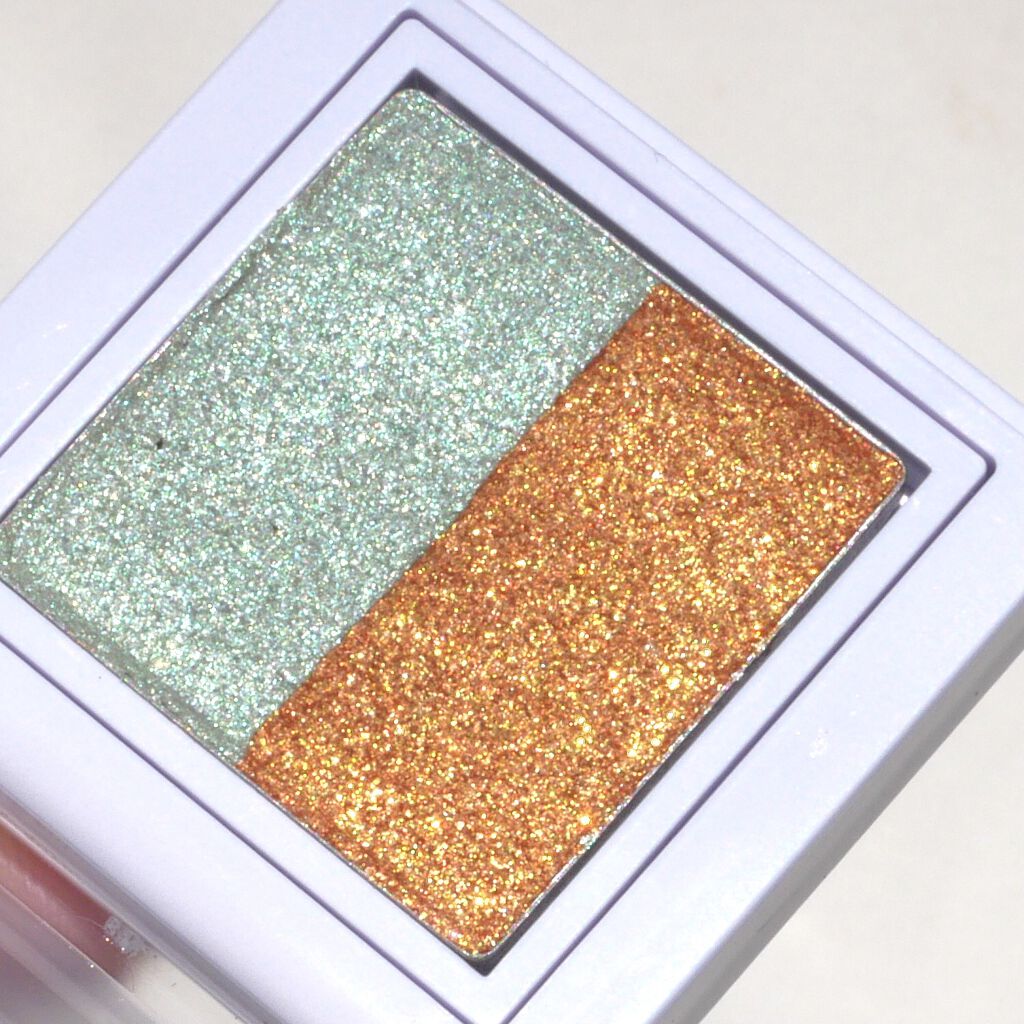 鮮やかなカラー展開に、ラメがたっぷり詰まったアイシャドウ🪞 しっとりとしたテクスチャーで粉飛びしにくく、目元への密着度も高いです◎ アイシャドウを触った時のむにゅっとした質感がたまらなく好きです♡