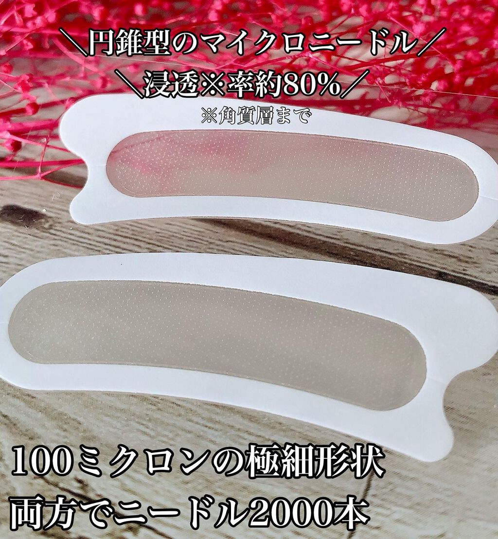 - ニードル本数2000本 100ミクロンの極細形状 若々しい印象づくりに必須のヒアルロン酸※1ですが、高分子だと肌に浸透※2しづらい…。 微細なマイクロニードル状にすることで、肌に直接有用成分を届けます。 ※1 保湿成分 ※2 角質層まで エイジングサインにアプローチする注目の4大成分を配合 みずみずしくハリのある肌に導く注目の美容成分を贅沢に配合しています。 目元に自信をチャージして笑顔あふれる上向きな自分へ。