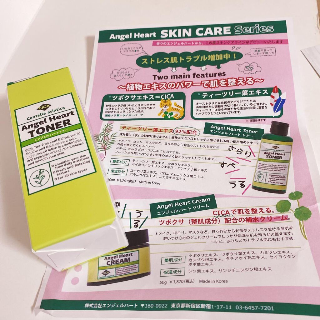 エンジェルハートエンジェルハートトナー¥1,760ティーツリー葉エキス92%配合の今や定番CICA化粧水✨ニキビや肌荒れ、日焼け後の刺激を受けた肌にしっかり鎮静効果があると言われているツボクサエキスがたっぷり🌿テクスチャーはサラサラで軽め❣️...