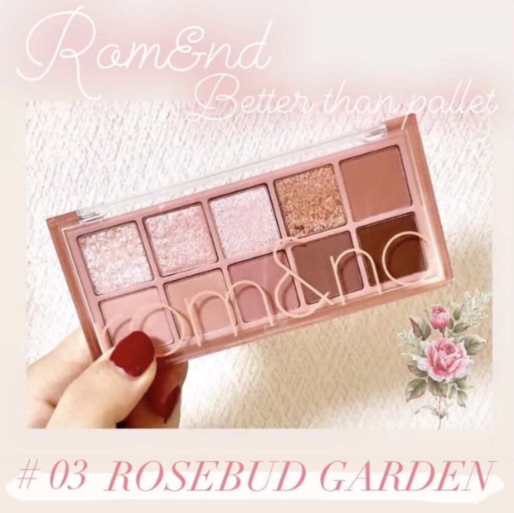 ✈️グランドスタッフのコスメ紹介✈️rom&ndベターザンパレット03ローズバッドガーデンROSEBUDGARDEN〰〰〰✈〰〰〰✈〰〰〰✈〰〰〰✈〰〰〰✈使いやすい色味とラメが美しいロムアンドのアイシャドウパレット🎨もともとは全部がグリッタ...