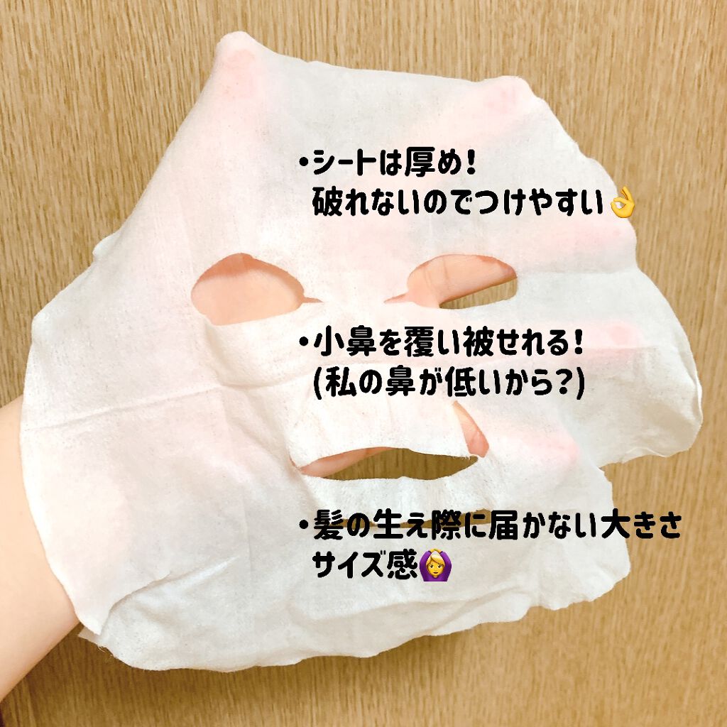 | 薄めのシートでピタッと肌に密着します。 さっぱりしている使用感なので化粧前にも良さそうです😊 | 詳細を見る | |