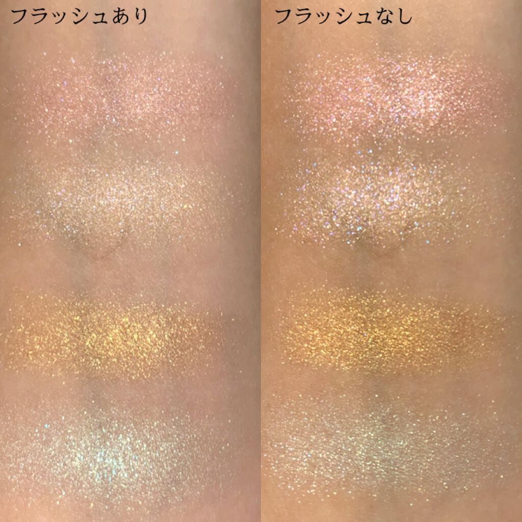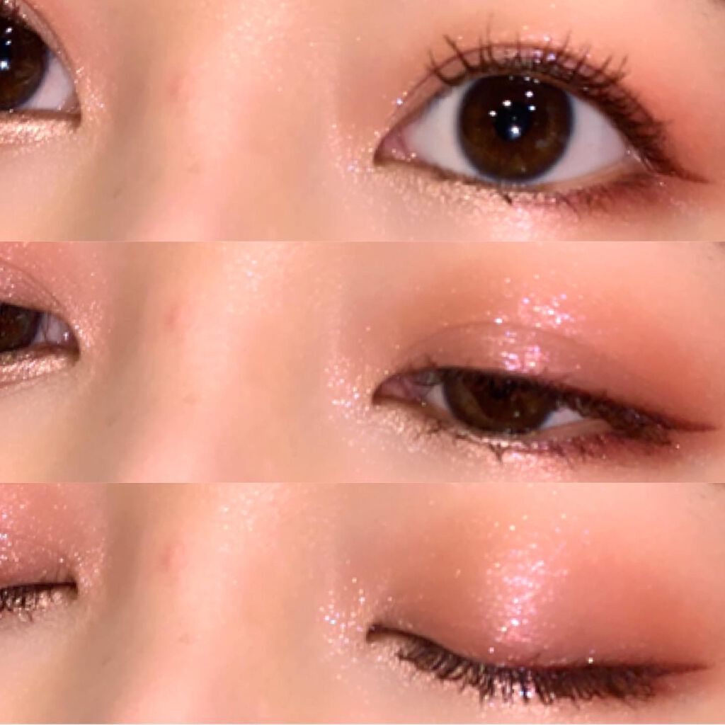 今回の新色は"まぶたに濡れたような光沢を放つ艶、光を操る立体感をプラスしリュクスなまなざしを叶えてくれる"というプリズムフォーミュラ。 確かにいつもとはちょっと違う…良いですこれ🫶❤️ ヌメッと面で光るようなツヤ感✨ テクスチャーは刻印ありタイプ、ツヤはクリームタイプに近いと思います🥰 要は刻印ありとクリームの良いとこ取りですね! ゴールドと柔らかいレッドの組み合わせ。アプレスキーとエレクトリックチェリーの中間のような色合い🤔 ゴールドとピーチカラー。今回の3色の中では一番黄みが強い。 青みがかったローズが可愛い。ぱっと見はわからないけど左上にみんな大好き青ラメが…!!