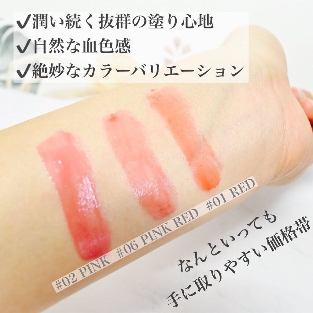 | リップティントランキング第3位 | 重ねて塗っても、ちゅるんと透け感が残って明るめカラーがとっても映える…💕色残りも◎ | 詳細を見る | ||