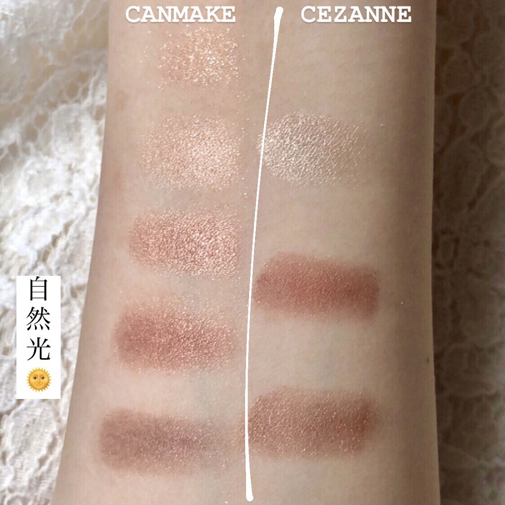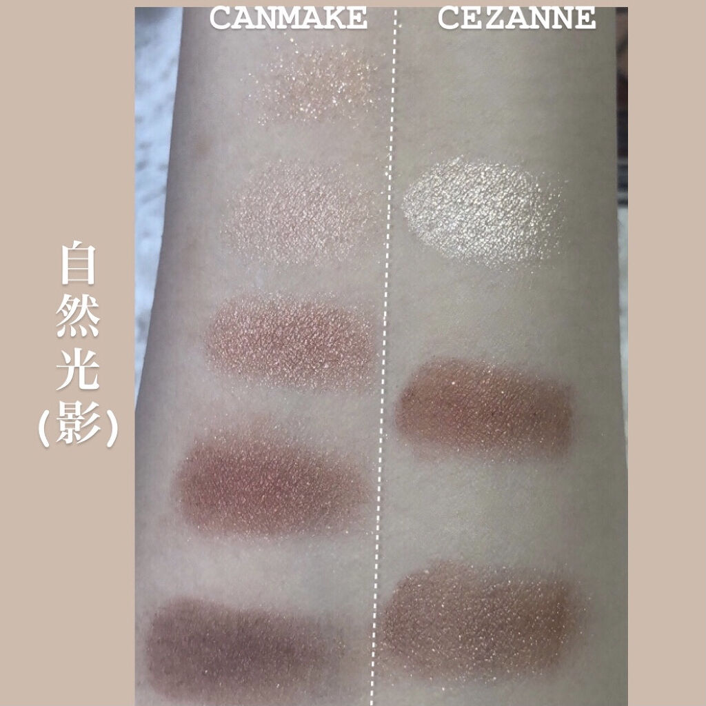 セザンヌ ペールトーンアイシャドウ01コットンベージュは明るく淡い色が得意な方やナチュラルメイクに◎ どう組み合わせても上手くまとまるのでメイク初心者さんにも使いやすいですよ☺️ 左上ラメはけっこう華やかなので苦手な方は分量を調整すると◎