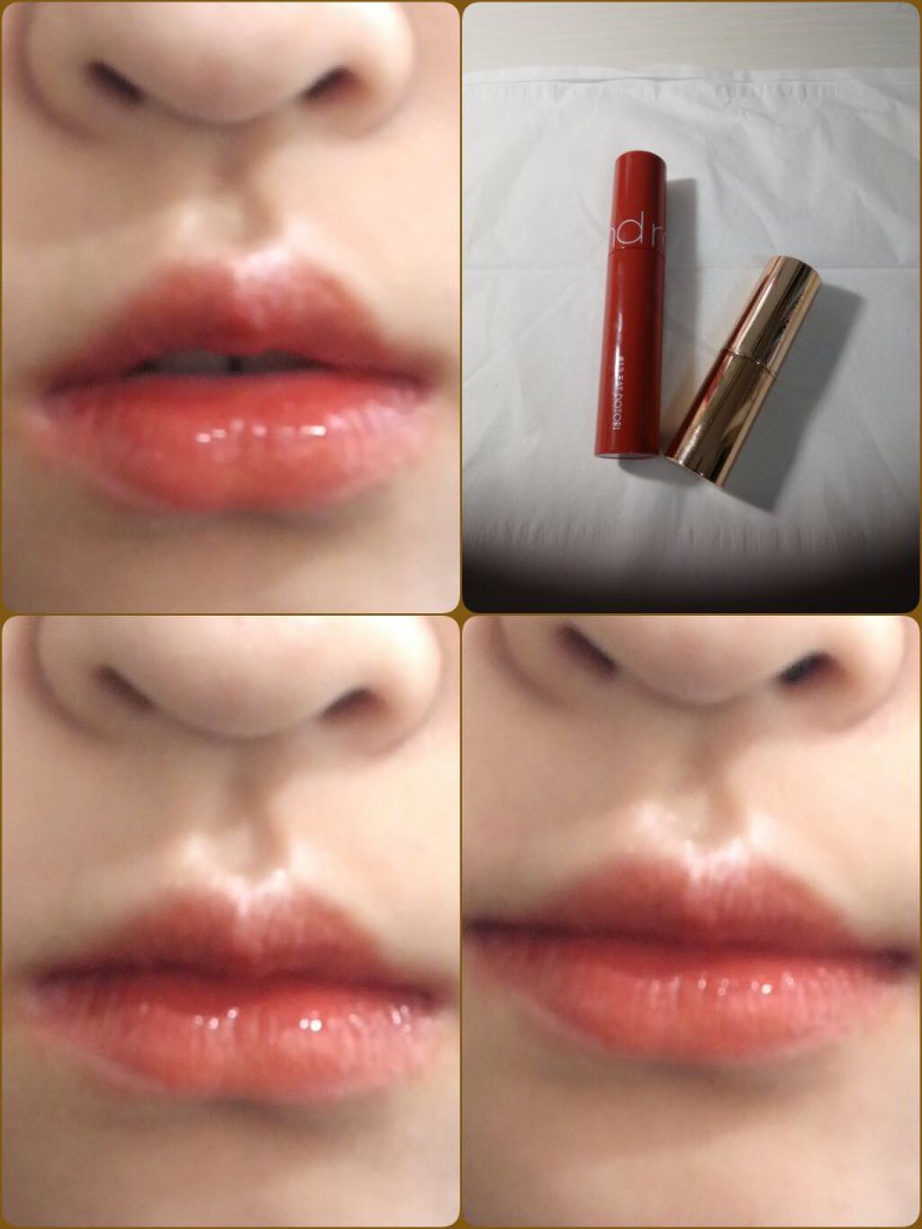 私はいつもrom&ndのジューシーラスティングティントは二度塗りしています! 一度塗りは少しうるうる感があって若干ナチュラルな仕上がり 二度塗りはちゅるちゅる感があって濡れたようなツヤがある ジューシーラスティングティントは二度塗りでもそこまで色が濃くならなくてうるうる感がちゅるちゅる感に進化します(?) rom&ndのティントは絶対んまんましないでください! ツヤが消えてしまいます! グラデリップにするなら容器のふちで調整しながら塗りますっ! これが私のジューシーラスティングティントの塗りかたですっ!