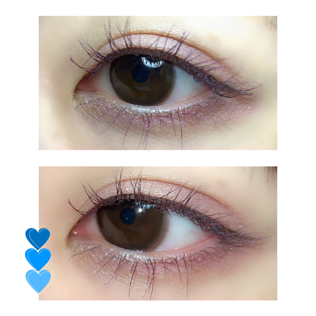 カラコンは ナチュラルに馴染むLARMEのMilky Way 。 あまりにも馴染みすぎてて 、美容師さんに「カラコンなの!?」と驚かれた (*´ `*)笑 たまに乾いた感じがするのがたまにキズ 、、目薬常備 。 ブルーのマスカラは クールな大人っぽい印象になるよね 。目尻にのみ銀色ダイヤ使用 。 アイシャドウの深飾は ひたすらかわいい … 😮💨 左上をアイホールに塗って 、右上を二重幅と涙袋 、左下を目尻側1/3に塗って 、右下をアイライン代わりに入れたら完成 ✨ 右下 めっっちゃラメも可愛いけど 、難しい 〜〜!