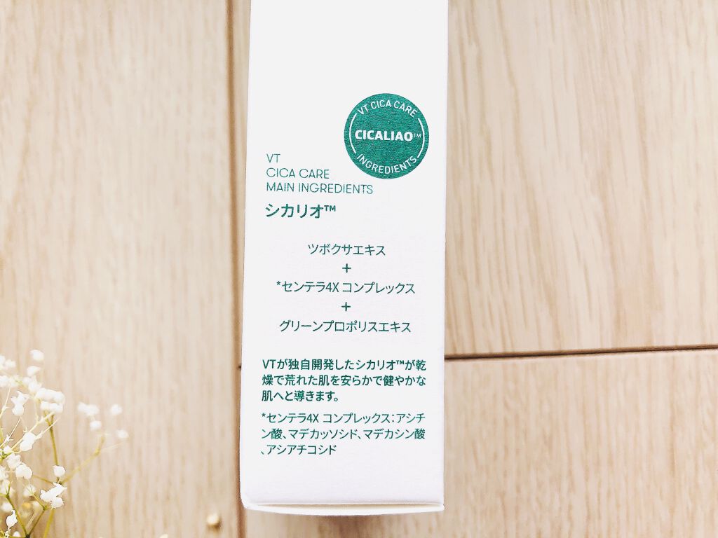 - やさしい使い心地の低刺激シカクリーム。VT独自成分のシカリオ™*配合! 肌に十分な保湿感を与え、乾燥を防ぎしっとりもちもち肌に。 クリームなのに軽くてしっとりしたテクスチャーでベタつき感やテカリが気にならない! つけた瞬間肌にスッとなじみ豊富な水分感が感じられます。 *ツボクサエキス、センテラ4Xコンプレックス(アシアチン酸、マデカッソシド、マデカシン酸、アシアチコシド):すべて整肌成分