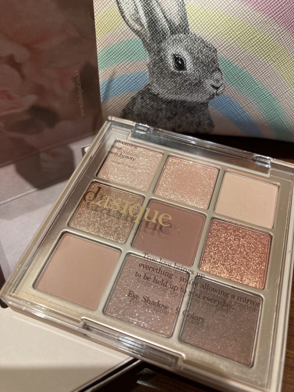 とても可愛くてテンションの上がるパレットです😍 くすみピンクのカラーが集められていて、マットとラメのバランスが良く、とても使いやすいです✨ メイクする順番、重ね方で雰囲気が変わるので、これからとても重宝しそうです😆 粉質も柔らかく、しっとりしているので、リピート確定のパレットになりました❣️