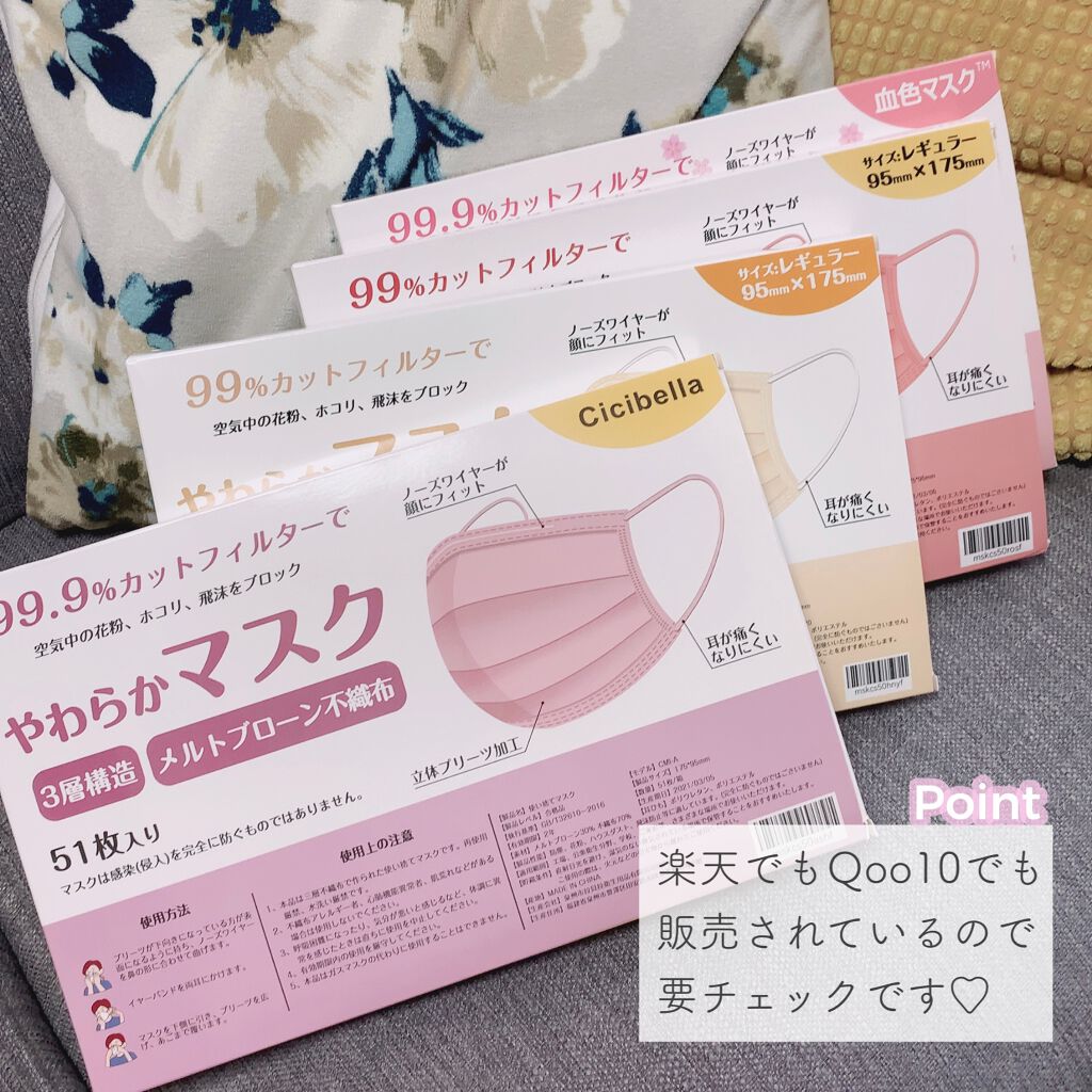 マスク生活でも盛りたい!😷💓⋱⋰⋱⋰⋱⋰⋱⋰⋱⋰⋱⋰⋱⋰⋱⋰🌷𝐜𝐢𝐜𝐢𝐛𝐞𝐥𝐥𝐚𝐜𝐨𝐥𝐨𝐫𝐦𝐚𝐬𝐤わたしはいつもQoo10で購入していますが、楽天にもショップあり◎カラーによって値段が違うけど、だいたい51枚で500円以下です💓⋱⋰...