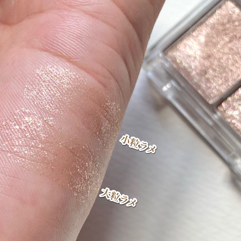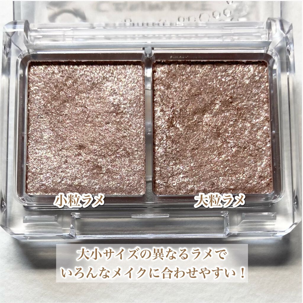 - ベース色が発色せずに、ラメだけをのせられるアイシャドウ。小粒と大粒のラメで、どんなメイクも理想の輝きに調節。「アイシャドウの上に重ねる」「アイシャドウの下に仕込む」「単品で使う」など、お好みで使えます。