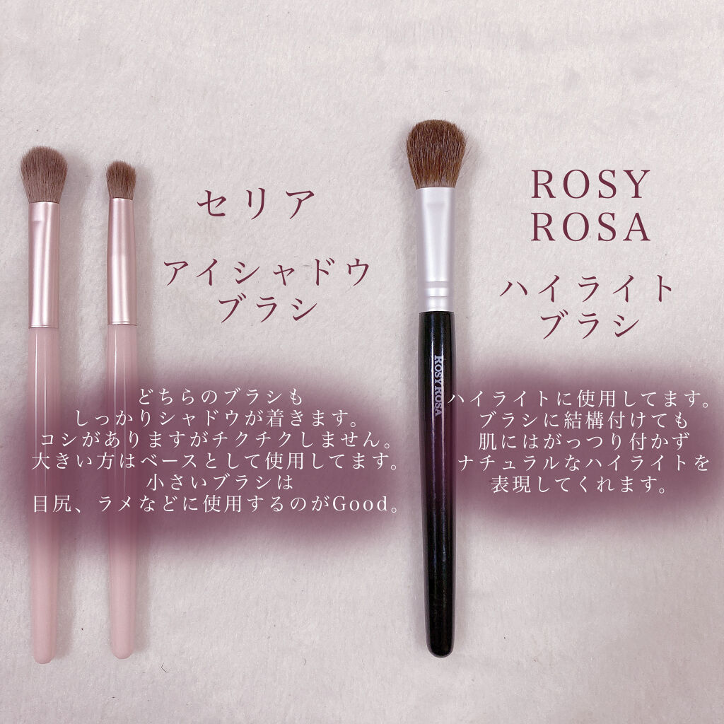 アイブロウブラシとして売られている方もアイシャドウを塗る時に使ってますが とにかくサイズが小さいので細かい作業に向いてます 下瞼の目の際にアイシャドウでライン引く時 特におすすめです👍🏻 どっちも税込¥110 なので細かく丁寧にメイクしたい人はぜひ使ってみてください!