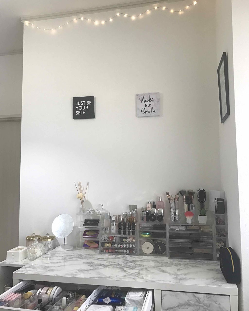 引っ越ししたてで殺風景だった一角を模様替えしました!デスクの中にも少しコスメはあるのですがメインの収納はこんな感じになりました😉...
